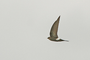 外形特征:华西白腰雨燕是一种大型的雨燕,拥有长而尖锐的翅膀和深叉状的尾巴。上体深色,下体灰白色,具有明显的白色臀部斑块和分叉的尾巴。头部和颈项呈中等棕色,与光泽黑色的背部形成鲜明对比。下体羽毛边缘略带白色,喉部有一狭窄的白色条纹,最窄处位于喙基部,逐渐收细至尖点。翼展宽大,尾叉深,头部较大。
