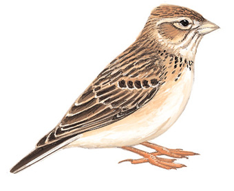 区别辨识:与小短趾百灵非常相似,但亚洲短趾百灵体型稍大,颜色更淡,胸部条纹较少。尾羽外侧白色部分比小短趾百灵多,翅膀形状也略有不同。