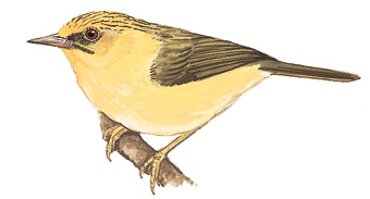 外形特征:金头穗鹛体长10-12厘米,体重约6-10克。具有鲜明的黑色半面具和条纹状的金色冠羽。雄雌相似,幼鸟颜色较淡,上部更褐色,下部更接近白色,两颊较暗。成鸟的耳羽暗灰色,亚种之间存在颜色差异,如binghami亚种上部更灰绿,auratum亚种体型较小,头型图案不明显。