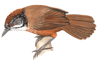 生活习性:栖息于山地和丘陵的森林中,常在低矮植被层活动,偶尔到达地面。以昆虫为主食,包括小甲虫和蜘蛛。常成对或小群出现,参与混合觅食群,与其他小型鹛类一起活动。